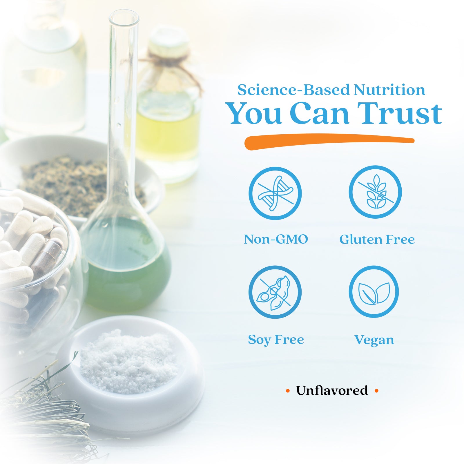 • Non-GMO • Gluten Free • Soy Free • Vegan • Unflavored