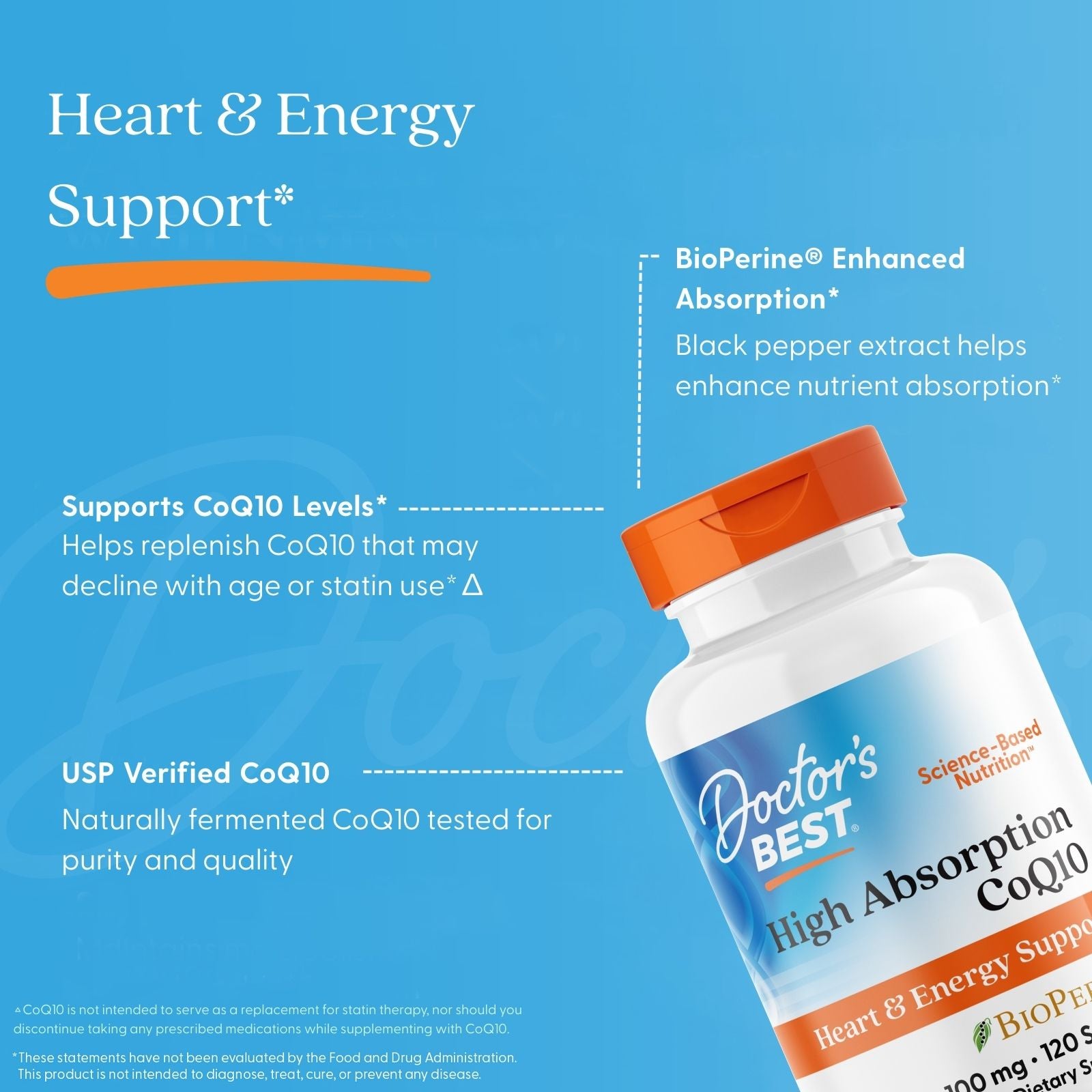 Doctor's Best High Absorption CoQ10 with BioPerine, 100 mg, 120 Softgels