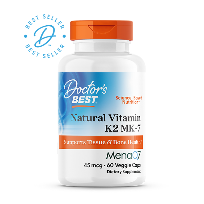 Doctor's Best Natural Vitamin K2 MK-7 with MenaQ7, 45 mcg, 60 Veggie Caps