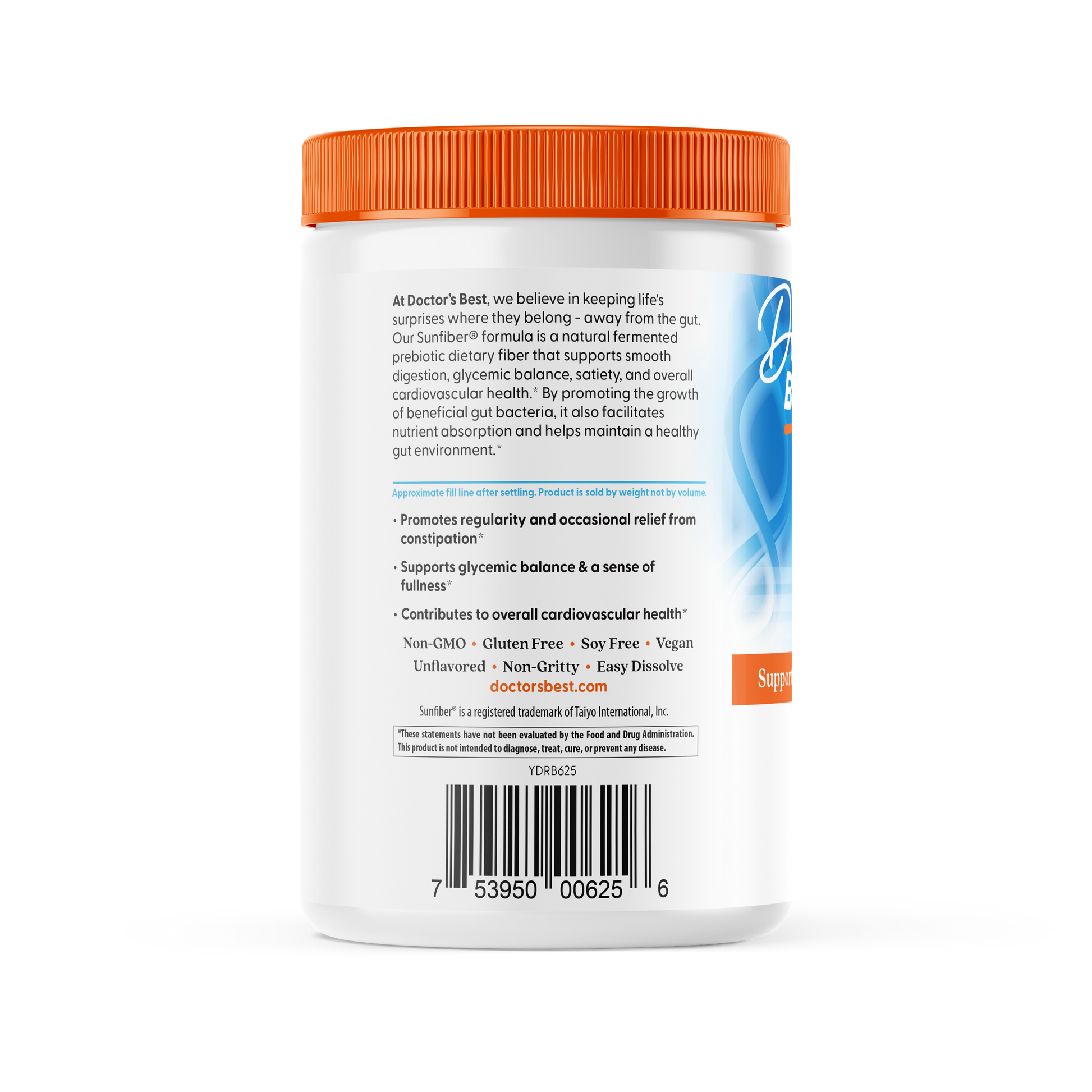 At Doctor's Best, we believe in keeping life's surprises where they belong - away from the gut. Our Sunfiber® formula is a natural fermented prebiotic dietary fiber that supports smooth digestion, glycemic balance, satiety, and overall cardiovascular health.* By promoting the growth of beneficial gut bacteria, it also facilitates nutrient absorption and helps maintain a healthy gut environment.*