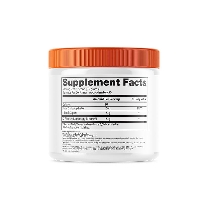 At Doctor's Best, we appreciate the everyday need for a reliable energy supply. Our specialized D-Ribose is thoughtfully crafted to help support optimal energy levels within muscle cells, potentially contributing to overall endurance and muscle function.*