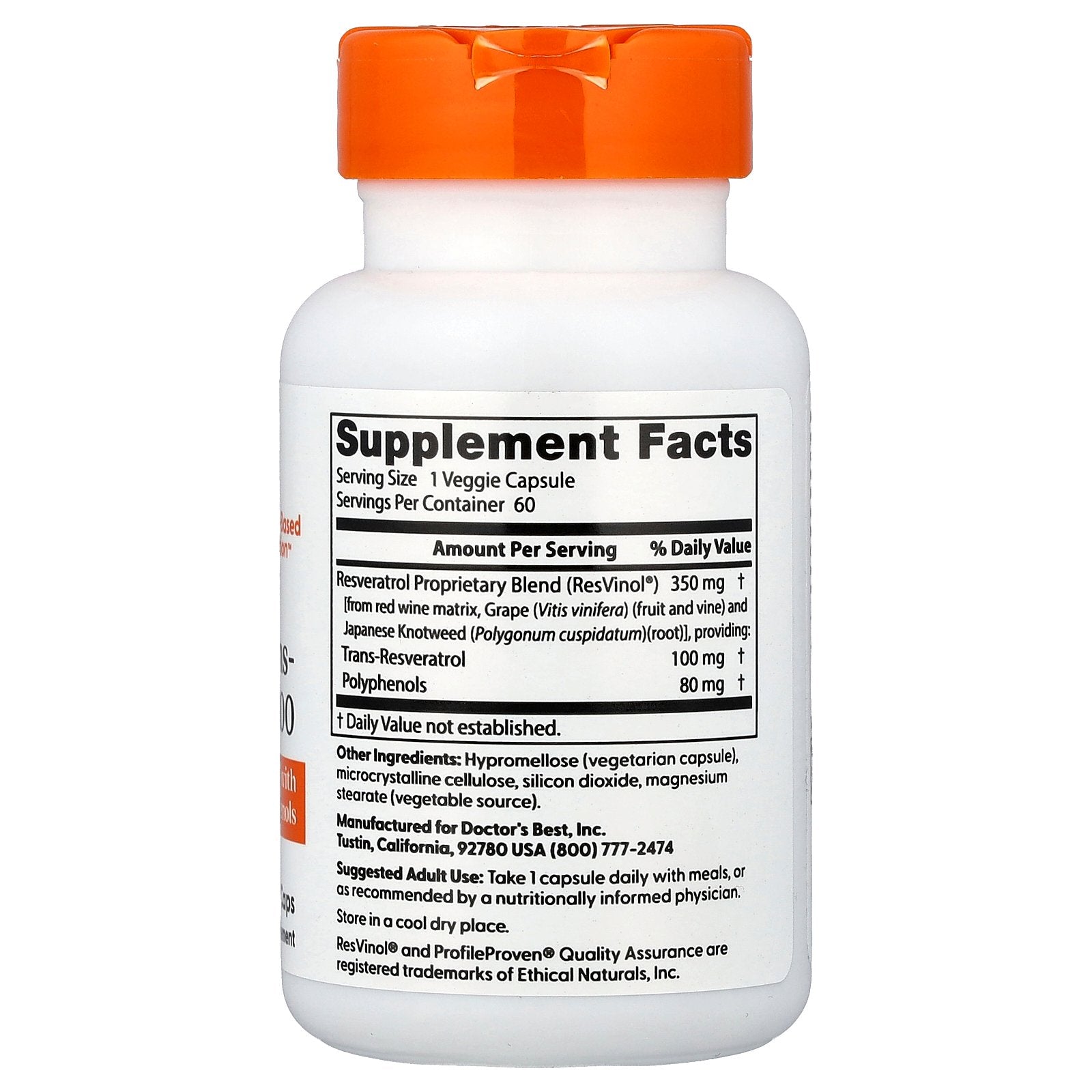 Doctor's Best Trans-Resveratrol 100 with ResVinol, 100 mg, 60 Veggie Caps